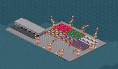 埠頭・コンテナヤード・倉庫のセットです。Simutrans Addon Portalで公開しているものと同じです。